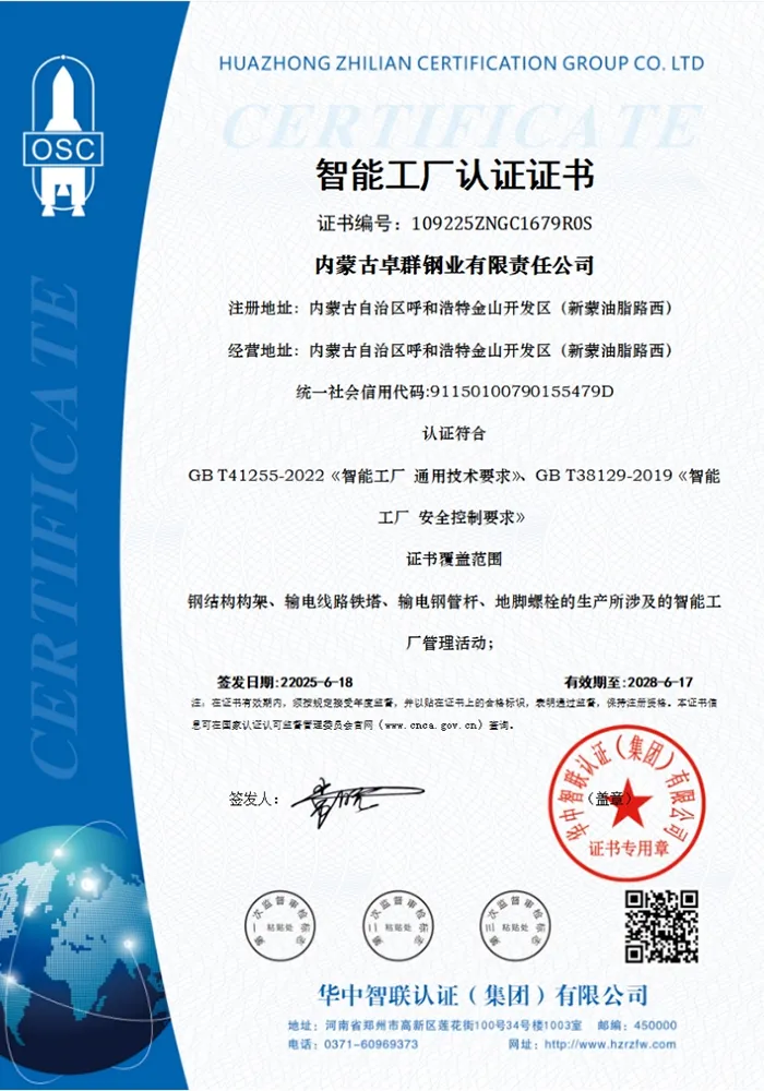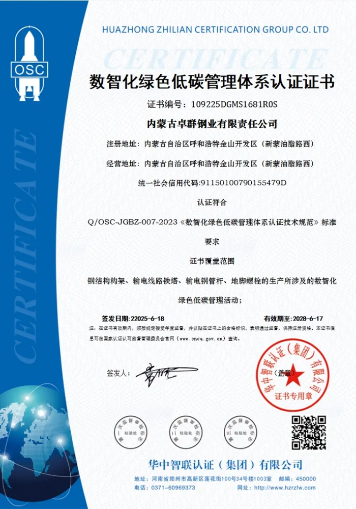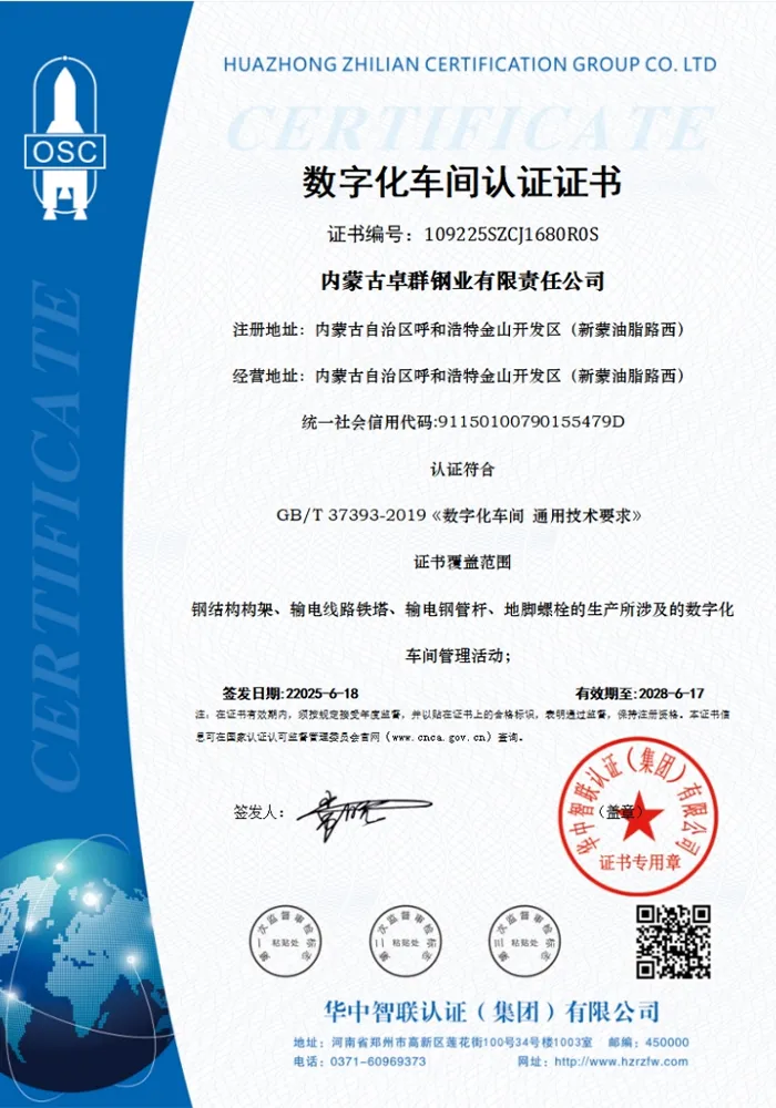 ООО Внутренняя Монголия Чжоцюнь Стальная Промышленность было основано 14 июня 2006 года. Это высокотехнологичное предприятие, малая и средняя научно-техническая компания, а также инновационная малая и средняя компания, глубоко специализирующаяся в отрасли металлоизделий. Оно зарегистрировано в Новом промышленном районе Цзиньшань (к западу от дороги Синьмэн Ючжи) в Хух-Хото, автономный район Внутренняя Монголия. После почти двадцати лет стабильного развития компания стала эталонной микро- и малой компанией в регионе в сфере производства стальных конструкций для линий электропередач и электроэнергетического оборудования.